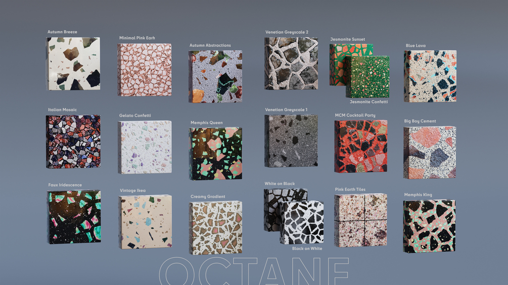 20 Fully Procedural Terrazzo Materials for Octane (C4D)