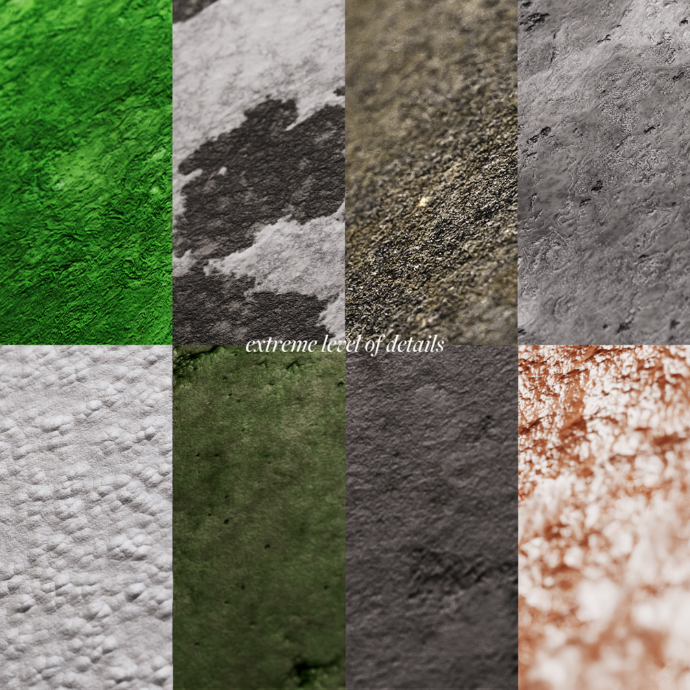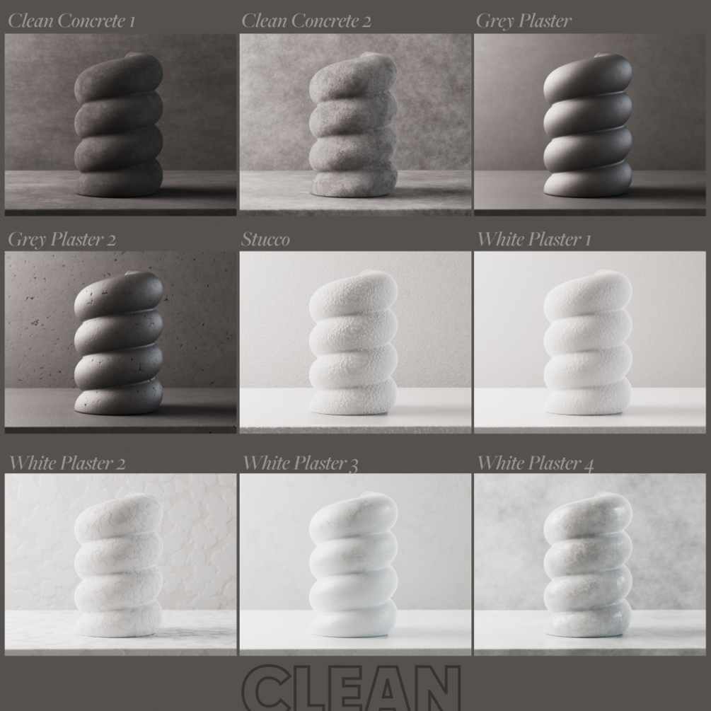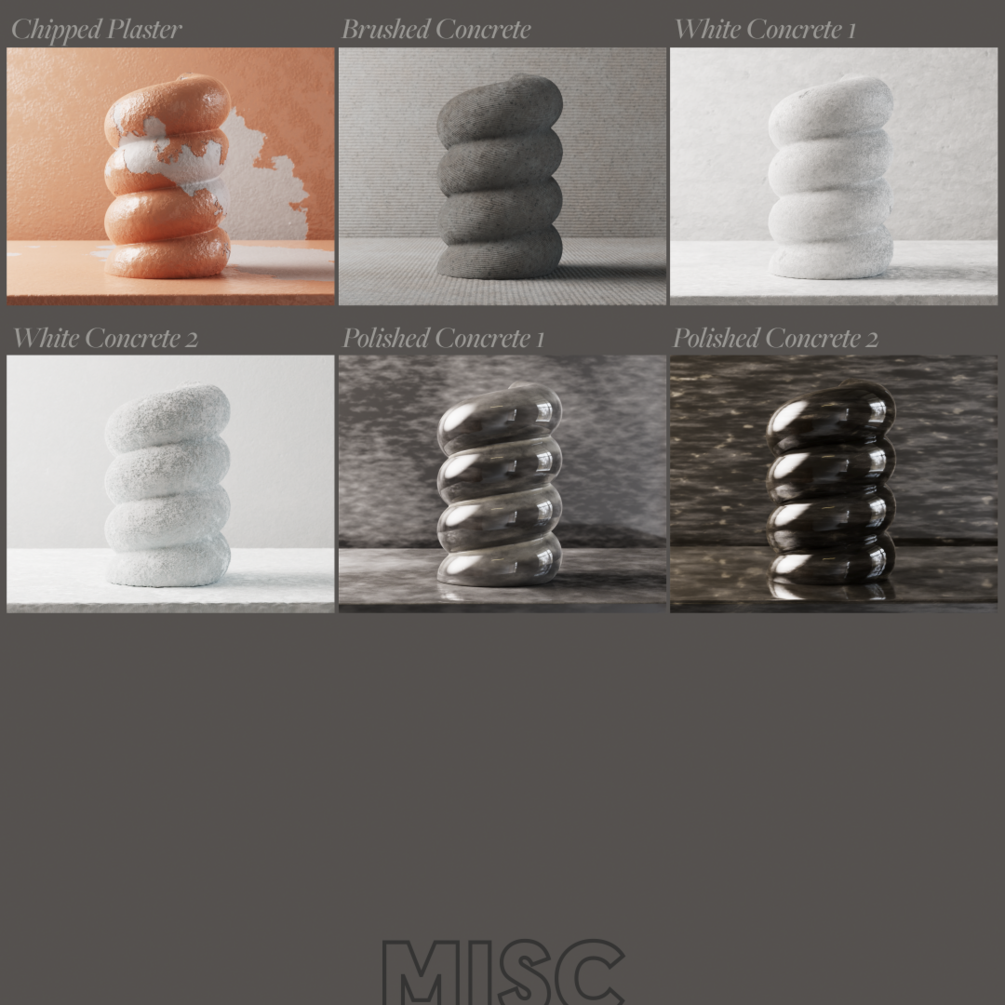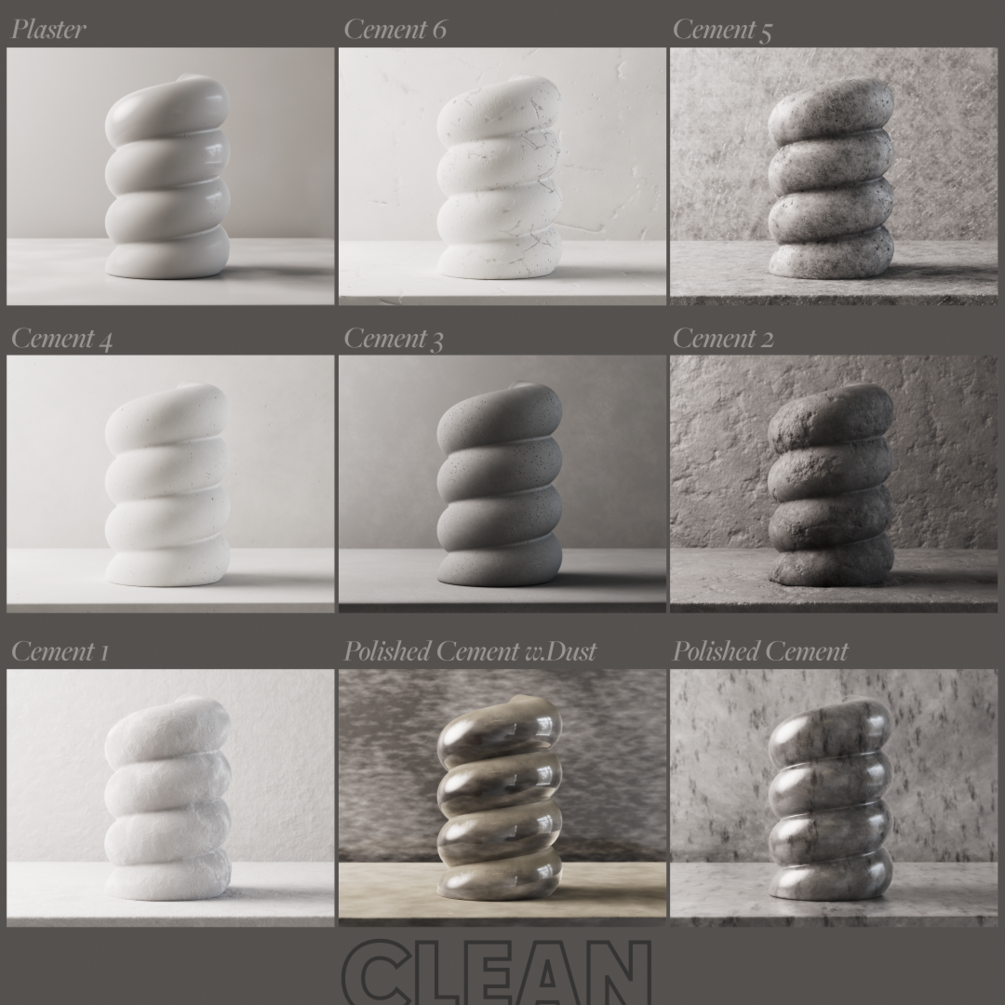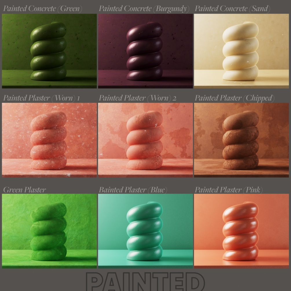 50 fully procedural concrete & plaster materials (no image textures)