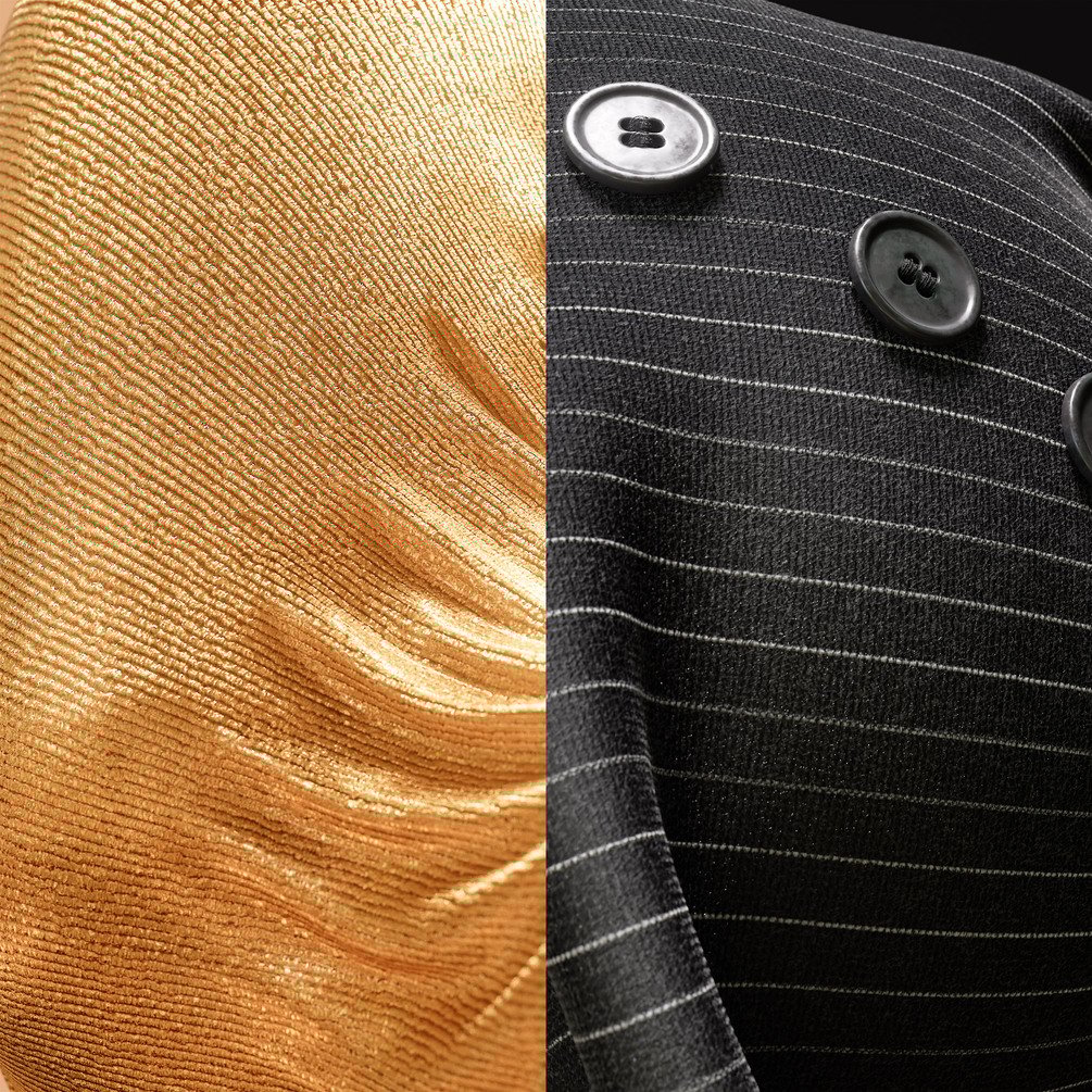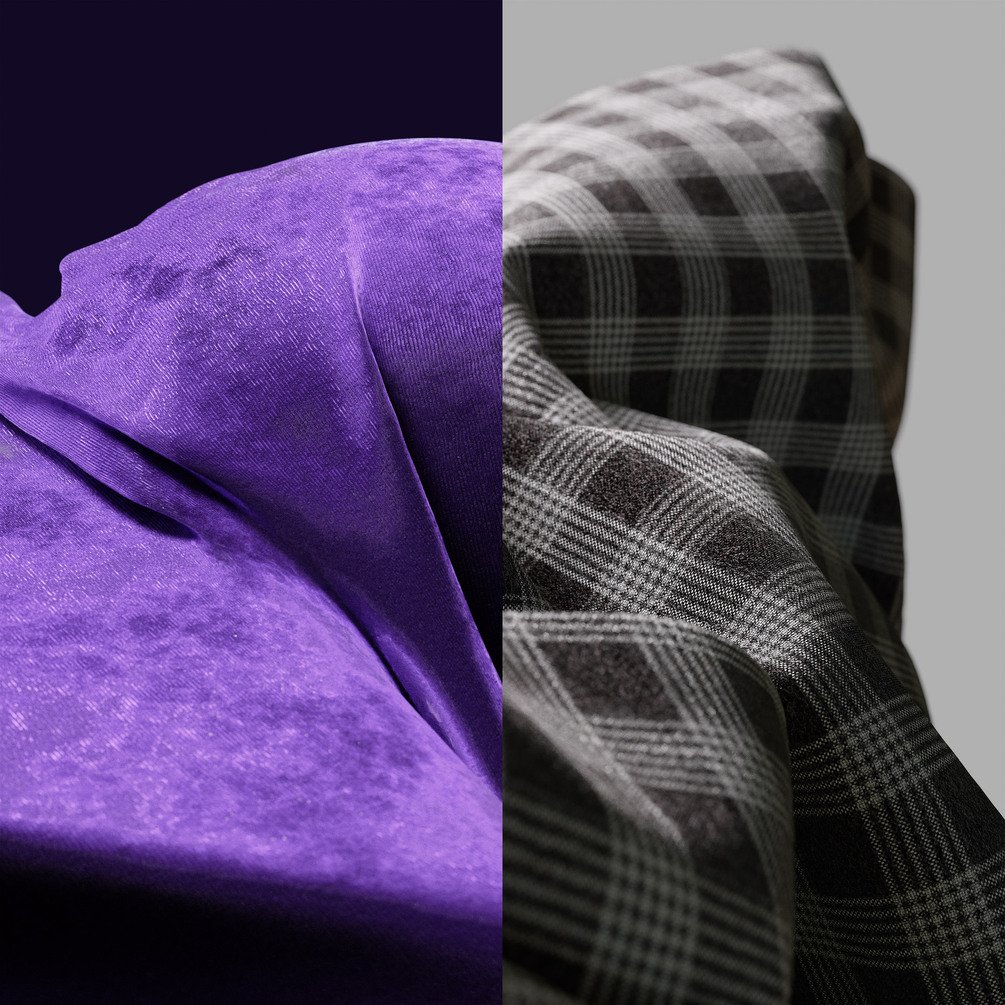 3 x Denim, Stone-Washed Denim, Acid-Washed Denim, Bleached Denim, Cotton Fleece, Fleece Shirt, Fleece Shirt (Heather Pink), 4 x Flannel, Power Mesh, Spandex, Athletic Mesh, 8 x Generic fabric, 2 x Metallic, Metallic Grid, Metallic Lamé, 2 x Sequins, Sequins Squares, 2 x Tarp, 3 x Bouclé, 2 x Fleece, 2 x Microfleece, 2 x Boa Fleece, Terry Fleece, Slub Fleece, Polar Fleece, 2 x Felt, 3 x Towels, 4 x Jersey Knit, 4 x Ribbed Knit, 3 x Jersey Heather, 2 x Ribbed Heather, Alcantra, 2 x Corrected Leather, 2 x Full-Grain Leather, Full-Grain Leather (Patina), Top-Grain Leather, Smooth Leather, Black Leather, Iridescent Leather, 2 x Nubuck, Nubuck Old, Suede, Suede Old, Gold Silk, Imperial Silk, Salmon Silk, Iridescent Silk, 2-tone Silk, 2 x Charmeuse, Crepe (Canton), Crepe (Silk), Crepe De China, Crepe De China (Silk), Duchess, Glitter, Dupioni, 5 x Linings, Chiffon, Chiffon (Crinkled), Georgette, Voile, Tullie, Tullie (Rainbow), 2 x Lace, Lace (Glitter), 3 x Weaved Pin-Stripe, 2 x Weaved Pin-Stripe (Blue), 4 x Twill Pin-Stripe, 2 x Herringbone, Herringbone (BW), Herringbone (Charcoal), Herringbone (Speckled), Corduroy (Yellow), Corduroy (Black), 2 x Panne Velvet, Silk Velvet, Glitter Velvet, 3 x Velvet, Velveteen, Velvet Pillow, Velour, Velour (Cotton), 5 x Cut-Velvet, Burlap, Canvas, 2 x Linen, Muslin (Sheet), Muslin (Gauze), 2 x Muslin (Mull), 2 x Nylon, 3 x Twill, 3 x Cotton, 2 x Wool, Rib